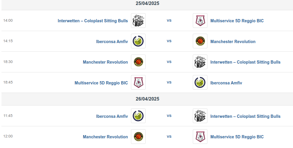 B Grubunda İse İspanyol Club Amivel,İtalyan Fisiosanisport Reggio BIC,Avusturya’dan Interwetten – Coloplast Sitting Bulls ve İngiliz Manchester Revolution yer alıyor.