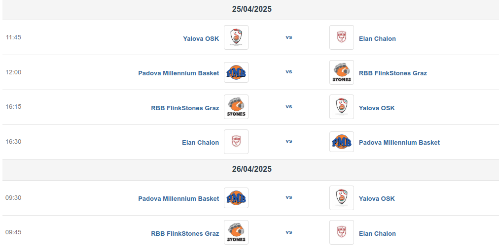 A Grubunda Yalova OSK;Avusturya’dan 8TF FlinkStones Graz,İtalyan Padova Millennium Basket Onlus ve Fransız Elan Chalon Basket Fauteuil takımları ile mücadele edecek.