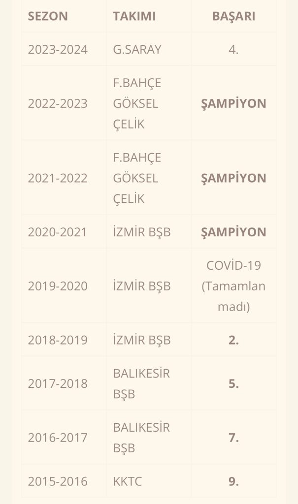 2024-2025 sezonunu Balıkesir BŞB forması giyen tecrübeli oyuncu takımını play-off’a kaldırmış ligi 7.sırada bitirmesine yardımcı olmuştu.